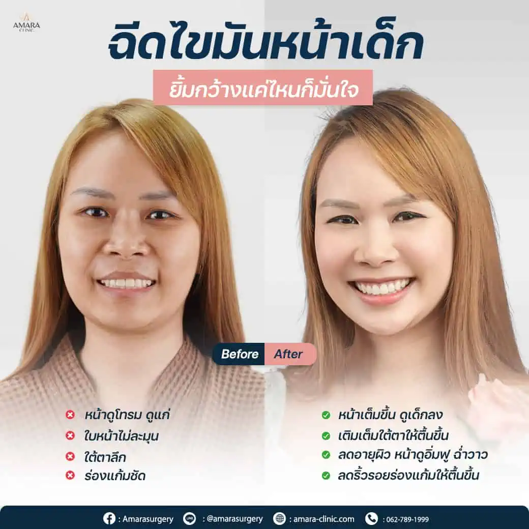 ผิวหน้าดูอิ่มฟูขึ้น เกิดขึ้นได้จริงเมื่อเลือกมา “ฉีดไขมันหน้าเด็ก” ที่ เอมาร่าคลินิก จะกี่รอยแก่ หรือ ร่องลึกหนักแค่ไหน ก็กลับมาเต่งตึงดูอ่อนเยาว์ได้จริง